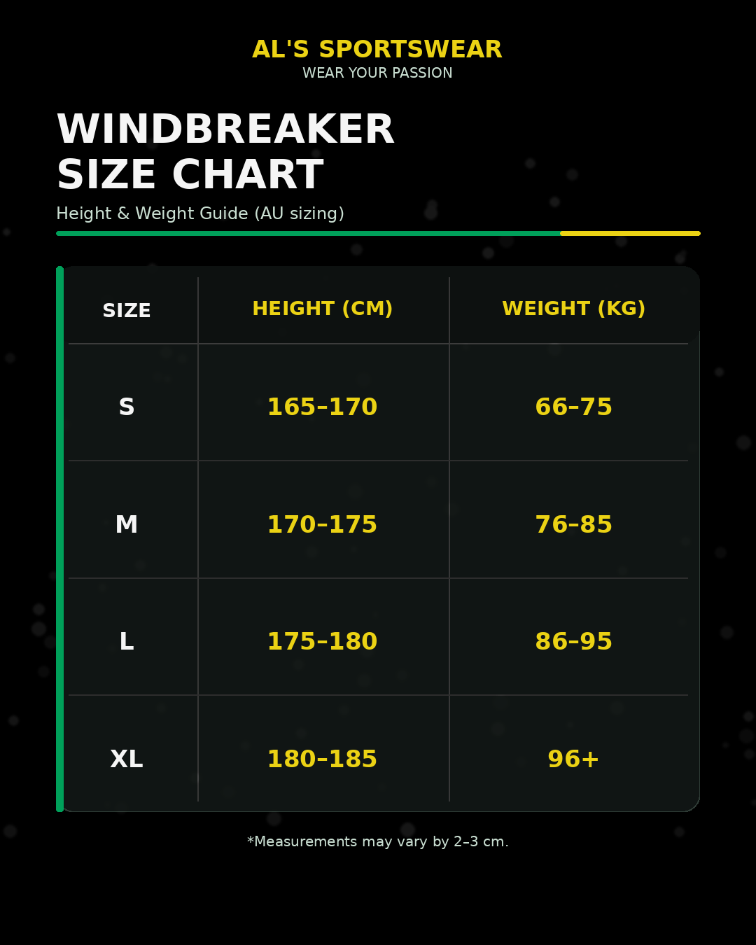 Windbreaker size chart